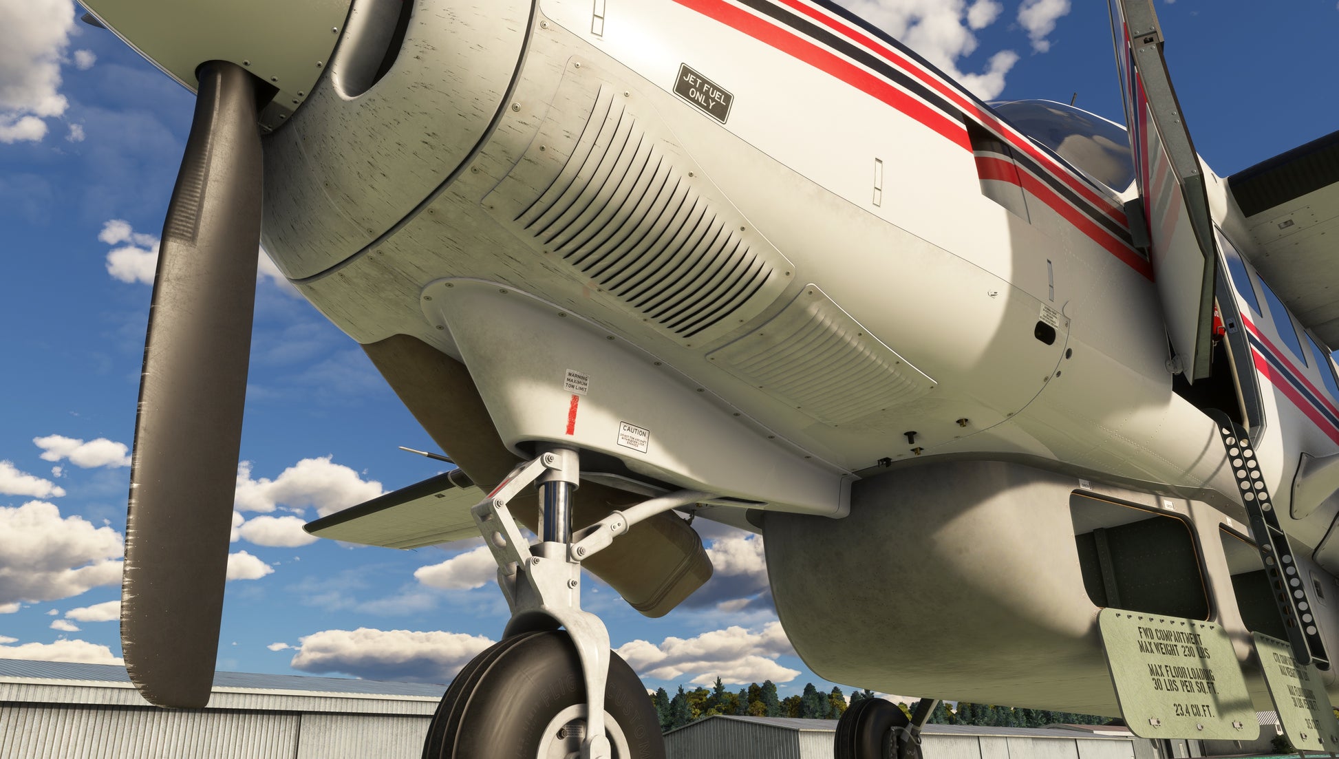 The Caravan Professional features a flight model with performance to match the real-world aircraft, based on real Caravan pilot feedback and in-flight data. Engine and aerodynamic performance should be within 2% of POH values, though no two engines are ever the same. The flight model uses the most up-to-date features available in MSFS 2020 & 2024, such as the new voxel CFD aerodynamics, CFD propeller, adverse yaw and stall parameters, and flexible tyre physics. Engine damage produces a rough-running engine and decreased performance.